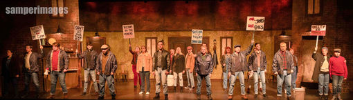 Rental package includes miner’s costumes with multiple pieces utilized throughout the show. This package includes 15 khaki colored miner jumpsuits which have been hand painted & distressed, ranging in mens sizes from 36 to 54. Package also includes 17 navy blue work jackets with “NCB” painted across the back (ranging in sizes from men’s S to men’s XXL), alongside 4 maroon “scab” jackets with “NCB” painted on back (ranging in sizes from men’s M to men’s XXL). The miner’s costumes are completed with 16 adjustable miner’s helmets with rechargeable headlamps.