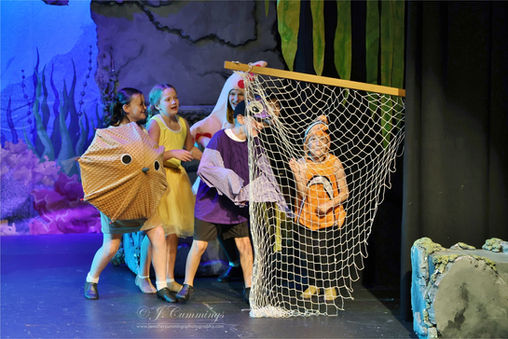 Assorted pieces: Sand dune, underwater stage cubes, hanging seaweed (2); coral (2); grotto; fishing net. Note that removing these pieces from rental package will not impact the price